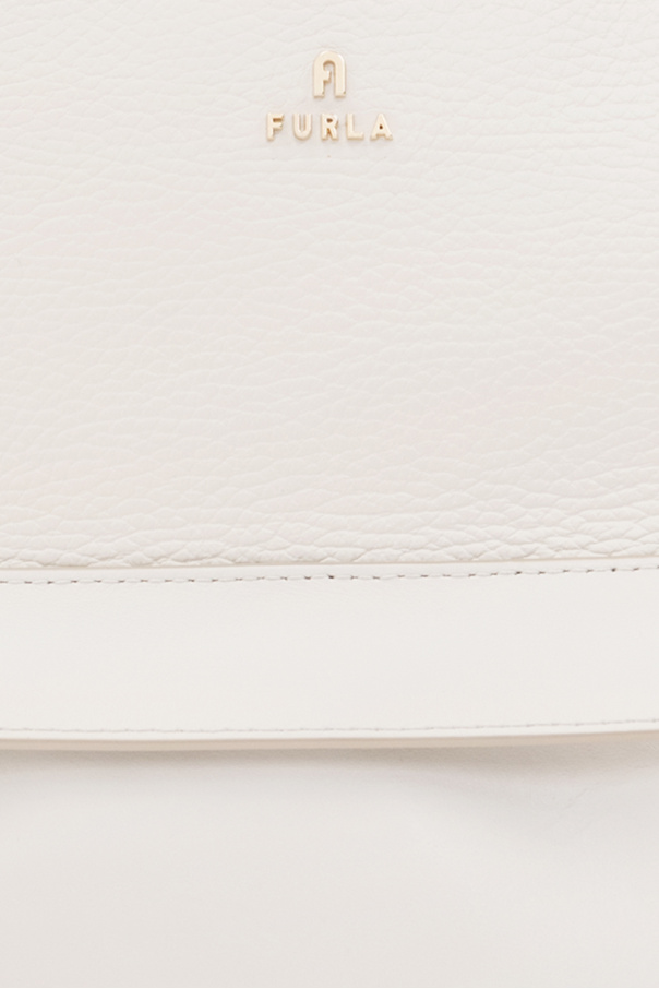 Cream ‘Favola Small’ backpack from Furla. Crafted from leather, this design secures with a zipper and features a zip pocket accompanied at front with a metal logo plaque, a half-round handle, adjustable shoulder straps, gold-tone metal hardware and one internal compartment with a zip pocket.