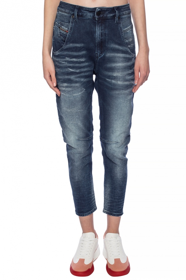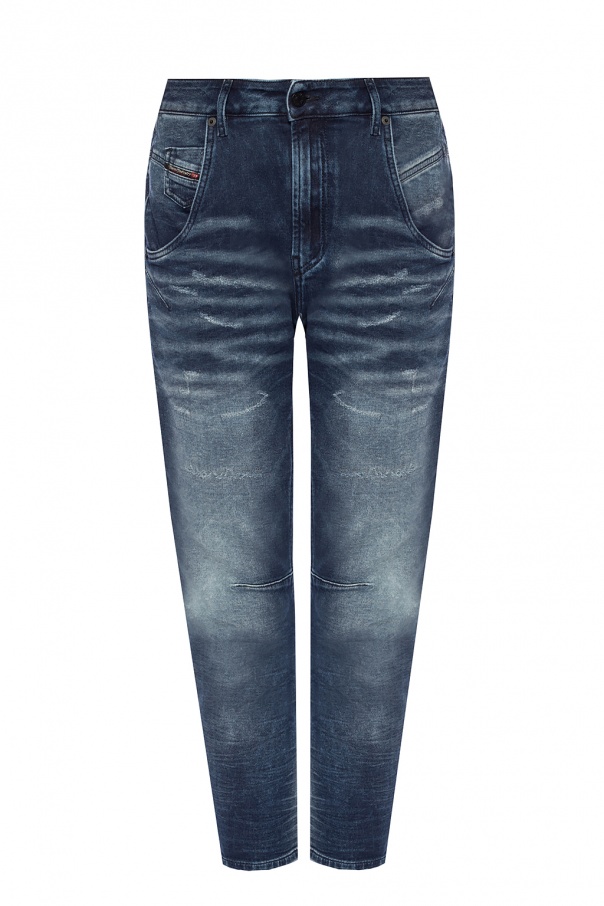 Navy ‘Fayza-Ne’ distressed jeans from Diesel. Zip and button fastening.