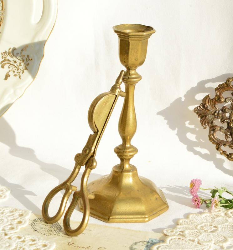 Прекрасный изысканный подсвечник с ножницами для обрезания фитиля и тушения