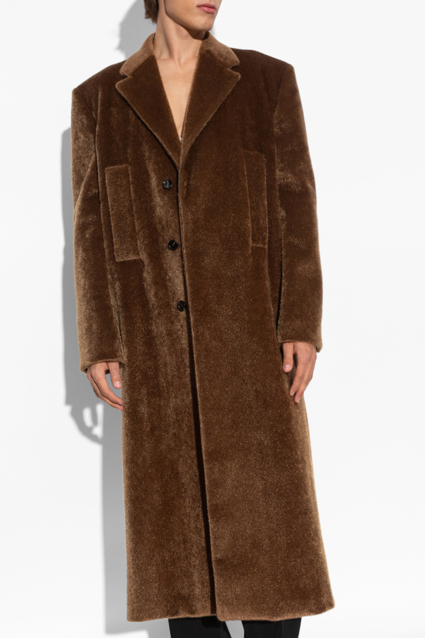 Introducing the Gucci Faux Fur Coat, an exquisite piece epitomizing sophistication and elegance. This long, brown coat, crafted from luxurious faux fur, features a classic silhouette with subtly tailored shoulders and a length extending below the knees. The soft, smooth fabric exudes a slight sheen, enhancing its opulent appeal. The coat is designed with a wide collar that adds a touch of timeless charm, complemented by three front buttons for an impeccable closure. Two large, rectangular pockets on the front offer both functionality and style, while the sleeves, adorned with four buttons on the cuffs, reflect the hallmark of elegant menswear. A short vent at the back ensures ease of movement, making this coat as practical as it is stylish. Perfect for both formal occasions and daily outings, the Gucci Faux Fur Coat seamlessly blends casual elegance with modern refinement. Each piece is a testament to Gucci's commitment to superior Italian craftsmanship and innovative design under the visionary direction of Alessandro Michele. Why Choose This Product? Luxurious faux fur material for an elegant look and feel. Classic design with modern details for versatile wear. Functional features including large pockets and buttoned cuffs. Expertly crafted with superior attention to detail. Designed by the renowned fashion house Gucci.