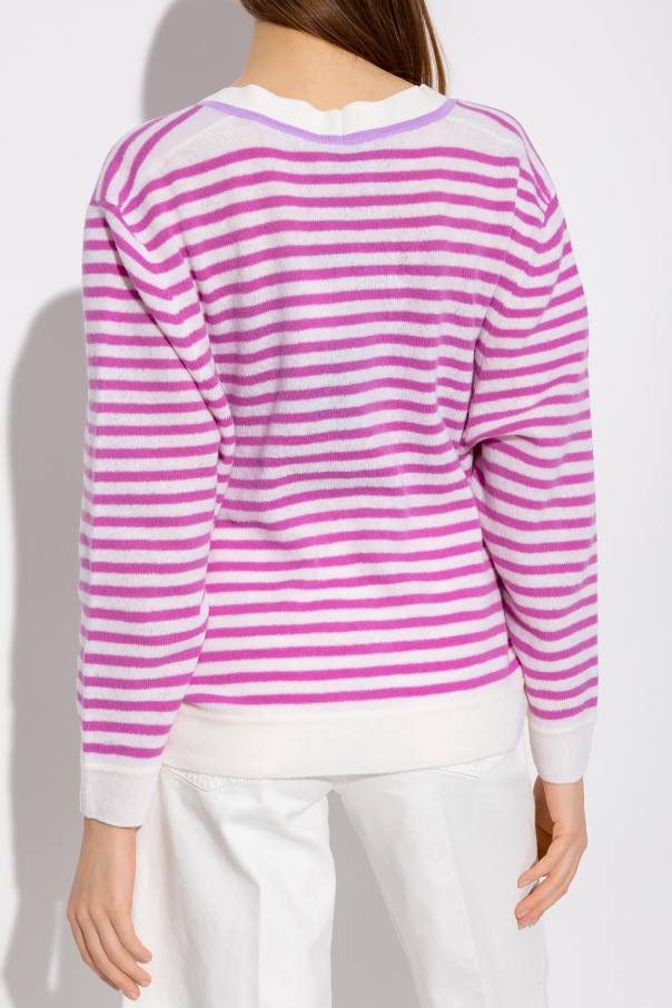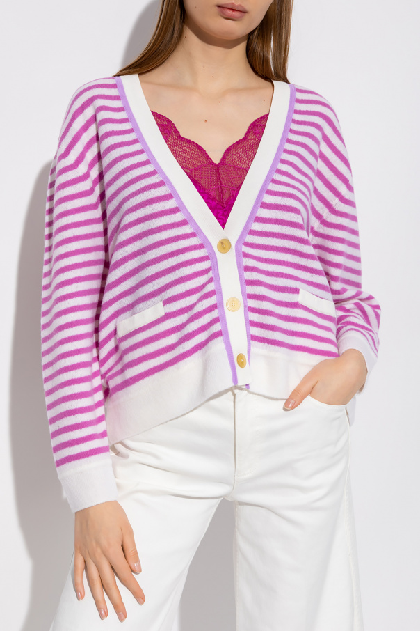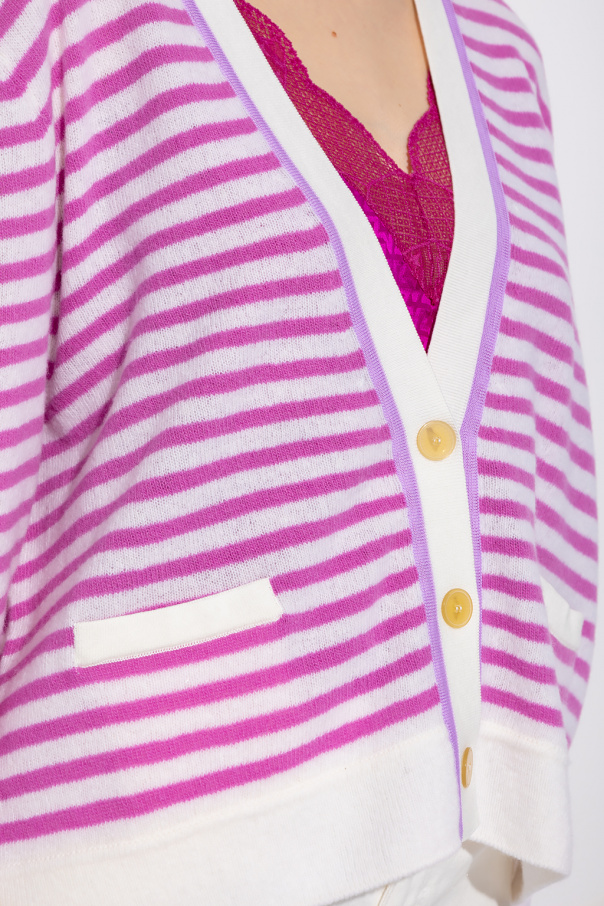 Pink and white cardigan from Forte Forte. Crafted from a wool and cotton blend, this V-neck design features button fastenings, a stripe pattern, two slip pockets and ribbed trims at the neck, hem and cuffs.