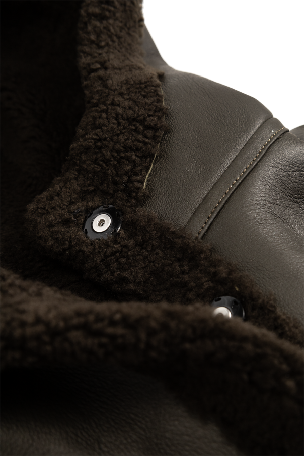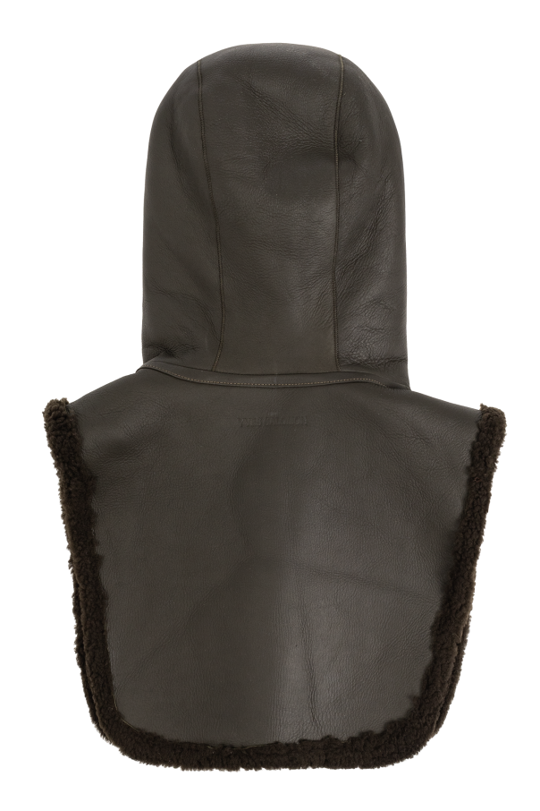 Dark green hood from Yves Salomon. Made of lamb fur, this item fastens with snaps and showcases an embossed logo on the back.