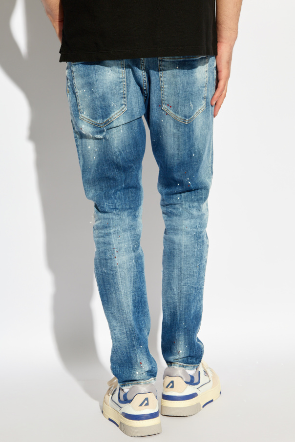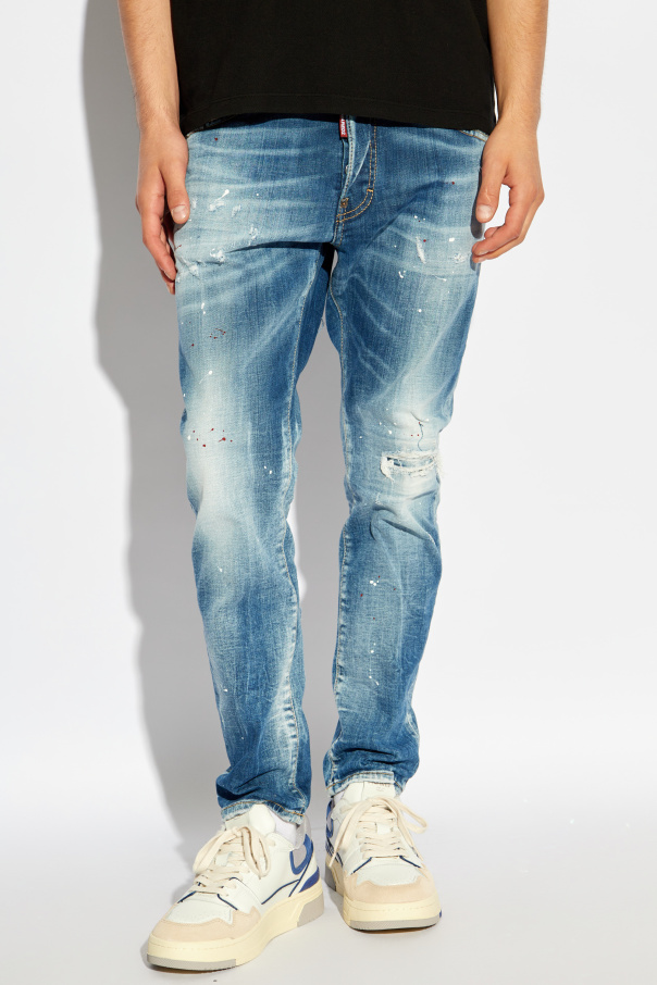 Experience the epitome of urban elegance with Dsquared2's Skater Jeans, meticulously crafted from 100% cotton denim. These jeans are a paradigm of the skater style, featuring a relaxed, slightly loose fit that effortlessly marries comfort with chic streetwear aesthetics. The palette of blue shades, from light to dark, creates a sophisticated distressed and aged effect, embodying the essence of worn-in charm. The jeans are artfully adorned with intentional abrasions and holes on the thighs and knees, a nod to the daring spirit of streetwear fashion. White speckles scattered across the fabric mimic the splatter of paint or result from a unique washing technique, adding an unparalleled character to each pair. The rear pockets, subtly distressed, complement the overall design, ensuring functionality without compromising style. Finalized with a classic button closure and featuring five convenient pockets, these jeans blend practicality with avant-garde design. Why Purchase These Jeans? Unique Design: Deliberate distressing and paint-splatter effects offer an exclusive, street-savvy look. Quality Material: Crafted from durable, high-grade cotton denim for lasting wear. Comfort Meets Style: The relaxed skater fit ensures comfort, while the design remains distinctly Dsquared2. Versatile Wear: Perfect for creating a range of looks, from casual outings to more styled streetwear ensembles.