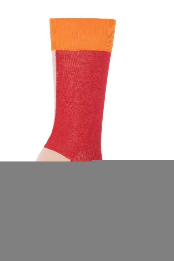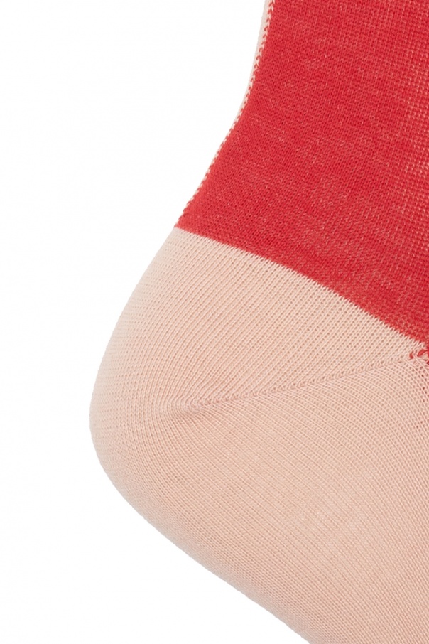 Red, pink and orange socks from Marni. Crafted from cotton jacquard knit with black Marni branding, this pair is finished with elastic cuff.