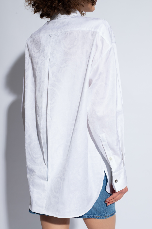 White jacquard shirt from Versace. Made of cotton, this design features buttons with a concealed placket, Barocco pattern, two flap pockets and long sleeves.