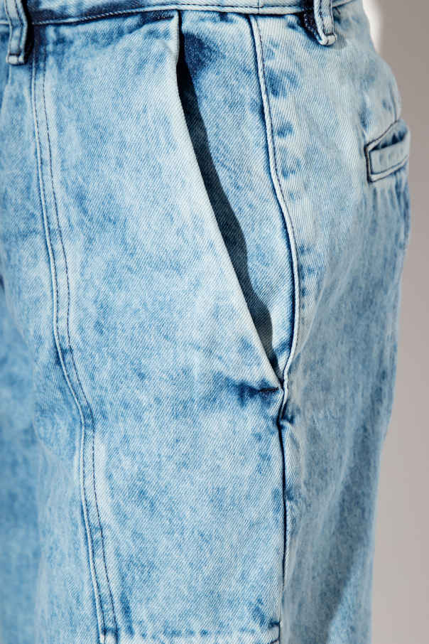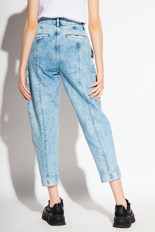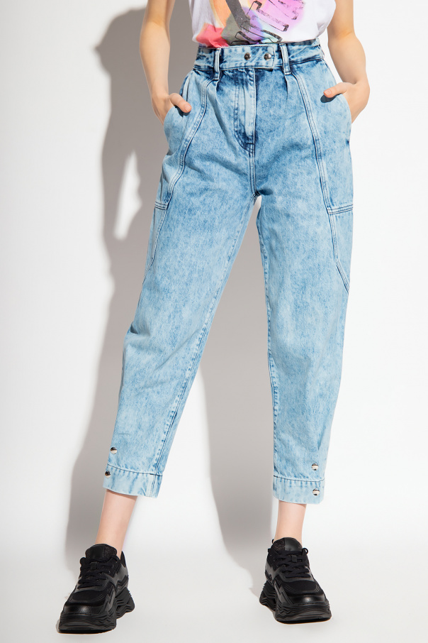 Blue jeans from Iro. Cut with a relaxed-fitting silhouette, this pair features a zip fly with snaps, four slip pockets, exposed stitching details and snap closures to the hems.
