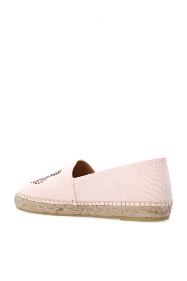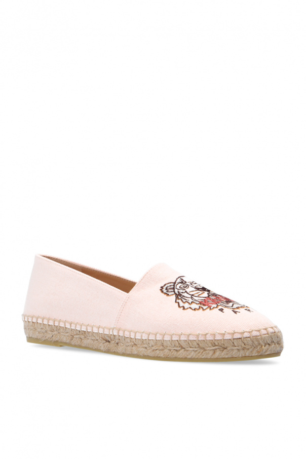 Beige espadrilles from Kenzo. Embroidered with the brand's logo, they sit on a beige rubber sole.