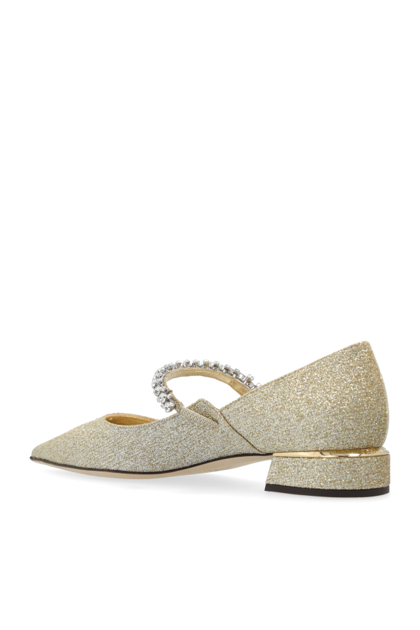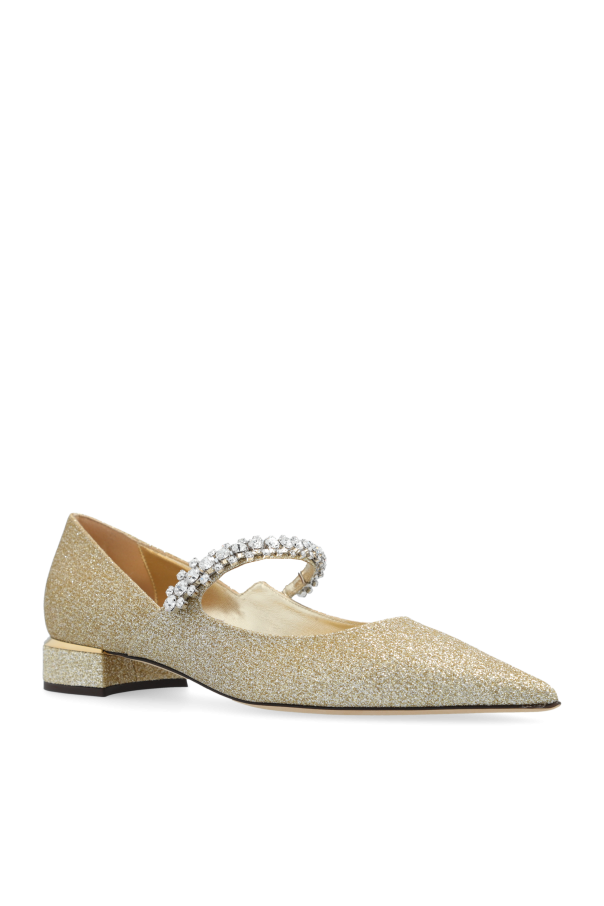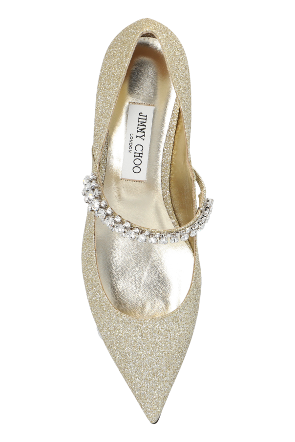 Introducing the exquisite Bing Pump by Jimmy Choo, a paragon of opulent footwear designed for the discerning connoisseur. These high heels, with their pointed toes, exude sophistication and are adorned with shimmering golden glitter elements that bestow an aura of luxury. The exterior of the shoes is meticulously crafted from glossy, golden glitter, ensuring they dazzle with every step. Inside, the shoes are lined with premium leather, offering unparalleled comfort for the wearer. An ornamental strap, studded with sparkling crystals, embellishes the instep, adding an extra touch of elegance and brilliance. The low, square heel, also covered in golden glitter, provides stability and ease of movement, making these pumps not only stunning but also practical. The interior bears a designer logo tag, affirming their authenticity and prestige. Designed to complement formal and elegant attire, the Bing Pump is perfect for special occasions, serving as a striking golden accent in any ensemble. Why Choose This Product? Luxurious golden glitter finish Comfortable premium leather interior Ornamental crystal-studded strap Stable, low square heel Designer authenticity with logo tag