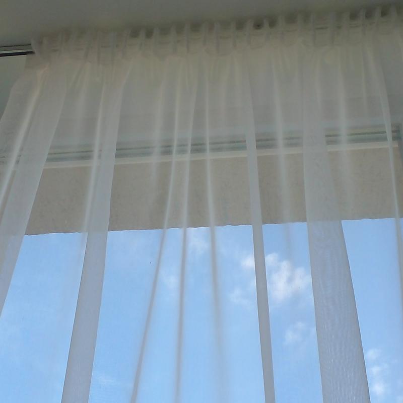 Тюль фіранка біла коротка готова.. Тесьма вже пришита. З двох частин. Підходить для кухні, спальні, кімнати. Розмір Ш 570(+/-3 см), В 200(+/-3см).