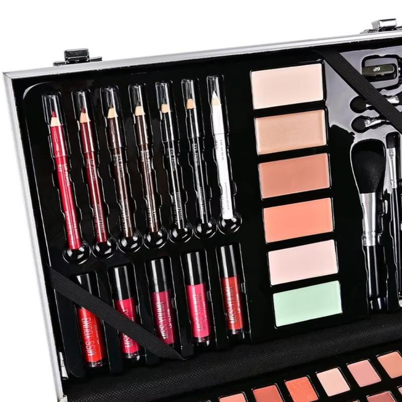 Набор для макияжа — это идеальный выбор для создания профессионального макияжа в домашних условиях. В стильном и компактном кейсе собрано все необходимое: тени для век, блески, румяна, пудра, кисти и аппликаторы, обеспечивающие легкость нанесения. Кейс оснащён отделениями, которые помогают удобно организовать косметику и легко находить нужные продукты.Этот косметический набор подходит для разных типов кожи и включает палитры с разнообразными оттенками, что позволяет создавать как повседневные, так и вечерние образы. Качественные пигменты гарантируют стойкость макияжа на протяжении всего дня. Компактный размер кейса делает его удобным для хранения дома или для перевозки в путешествии.