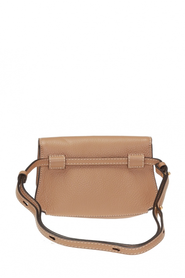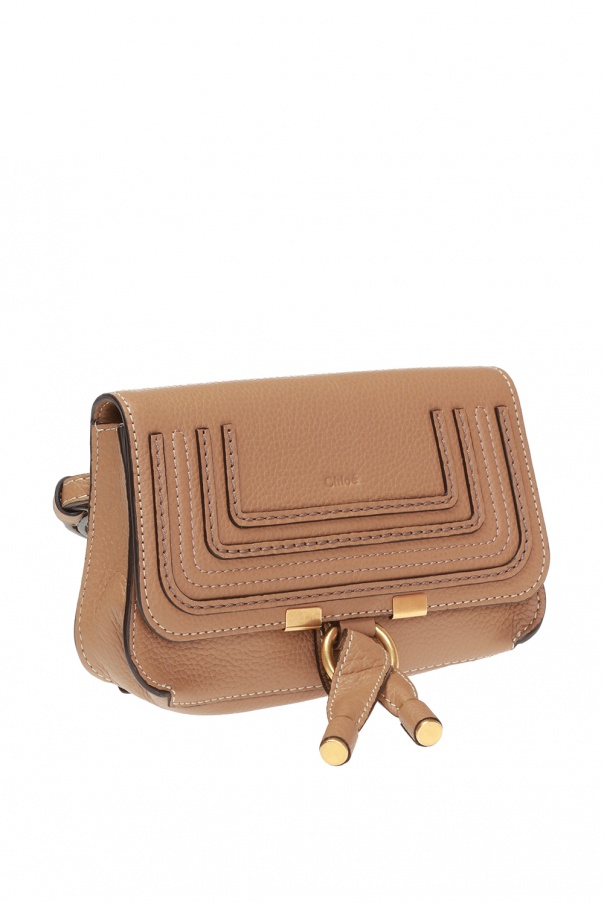 Brown ‘Marcie’ belt bag from Chloé. Crafted from calf leather, this item fastens with a snap and comes decorated with an embossed logo and leather tassels. It is complete with an adjustable belt, gold-tone metal hardware and one internal compartment with one slip pocket.