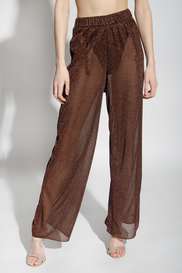 Brown trousers from Oseree. Spruced up with glitter, this pair falls with wide legs and features an elasticated waistband.