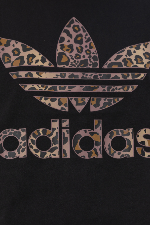 Black T-shirt from ADIDAS Originals, the ‘End Plastic Waste’ line. Made of BCI-certified cotton, this short sleeve design features multicolored logo print with an animal pattern and ribbed crew neck.
