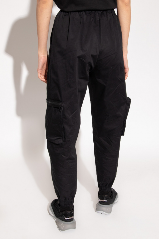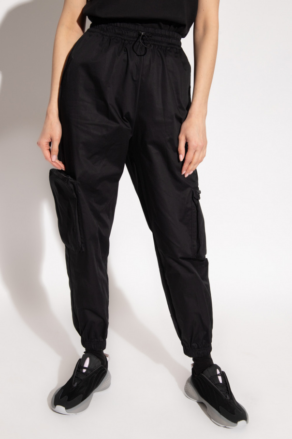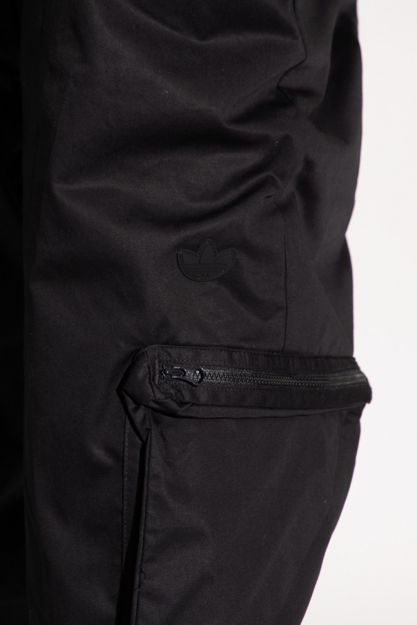 Black cargo trousers from ADIDAS Originals. Crafted from cotton, this pair falls with relaxed, slightly tapered legs and features a drawstring waist, two slip pockets and two zip pockets on the front, a Trefoil logo patch and elasticated cuffs.