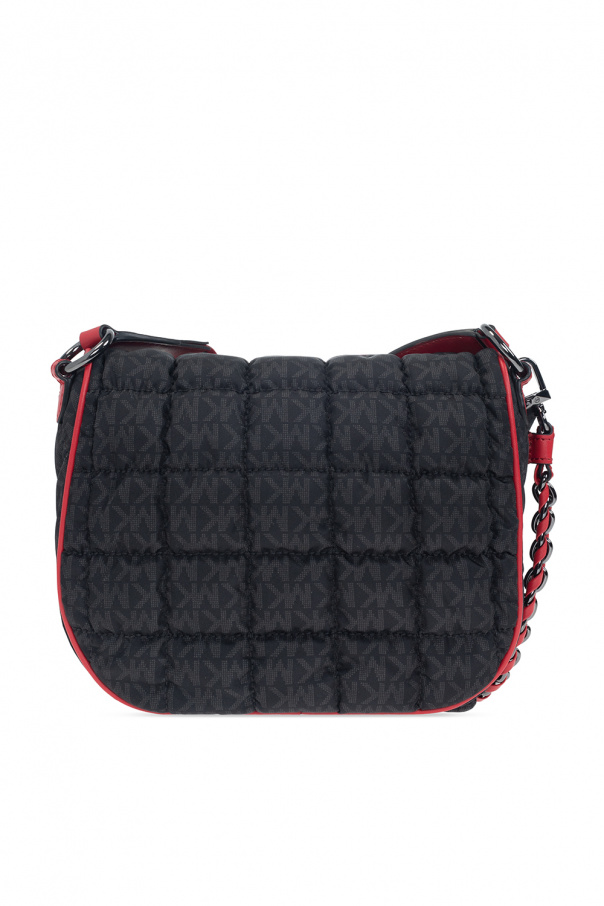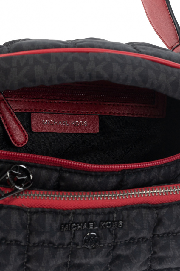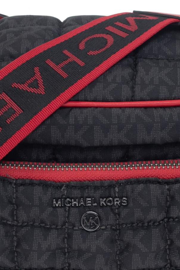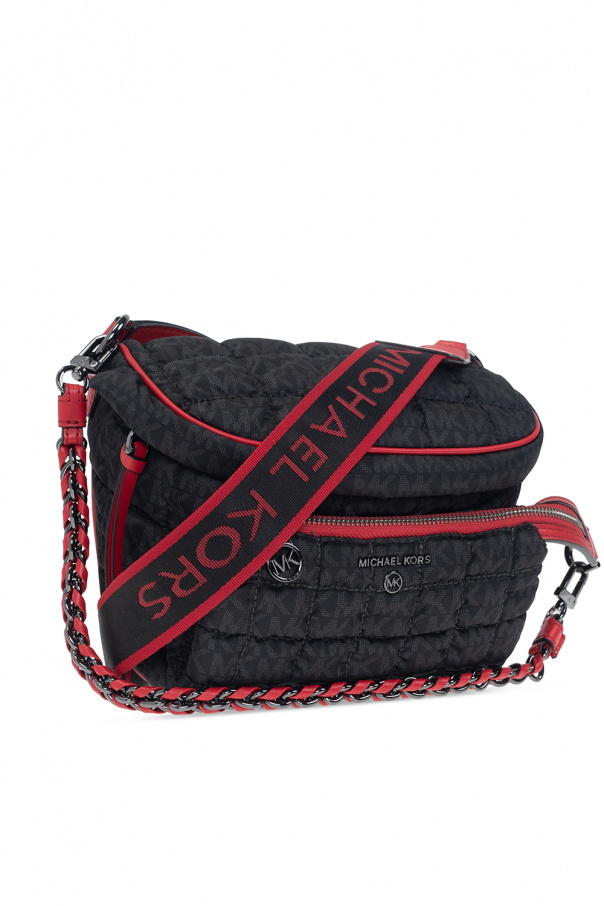 Black and red ‘Slayter’ quilted belt bag from Michael Michael Kors. Fastened with a zip, this garment is decorated with a monogram and a metal logo appliqué in silver-tone. It is complete with a front zip pocket, adjustable logo-embroidered belt, detachable strap reinforced with a chain and one internal compartment with one slip pocket and one zip pocket.