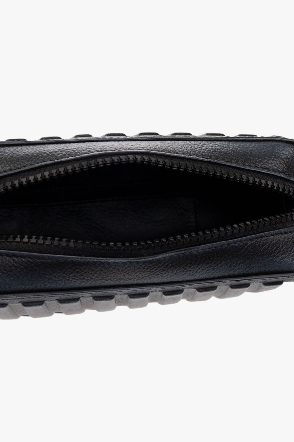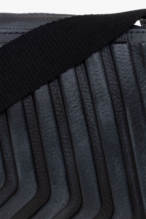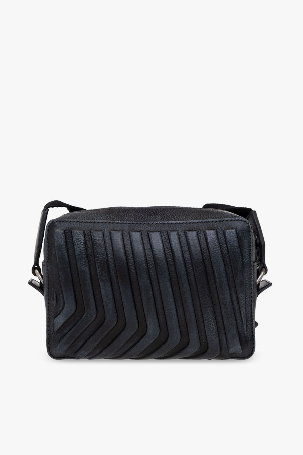Black and navy ‘Car’ shoulder bag from Balenciaga. Made of calf leather with an antique effect texture, this model is complete with a two-way zip, raised pattern, white logo print, adjustable shoulder strap, silver-tone metal hardware and one internal compartment with one card slot.