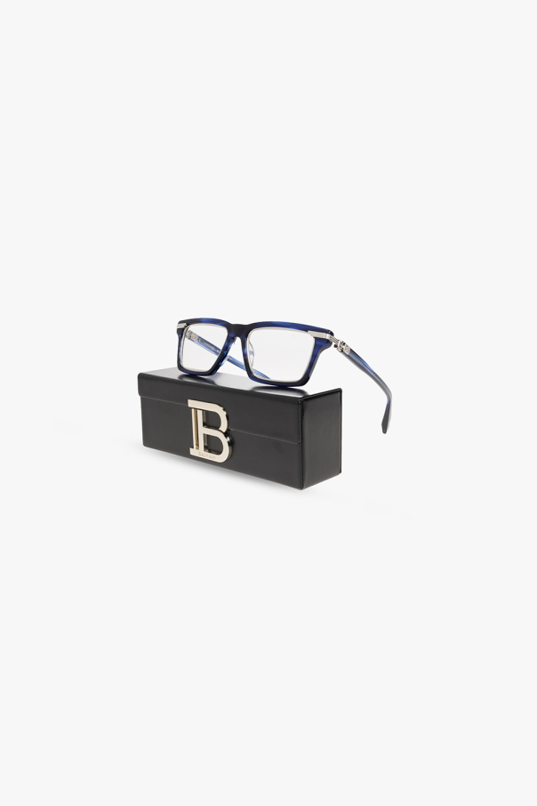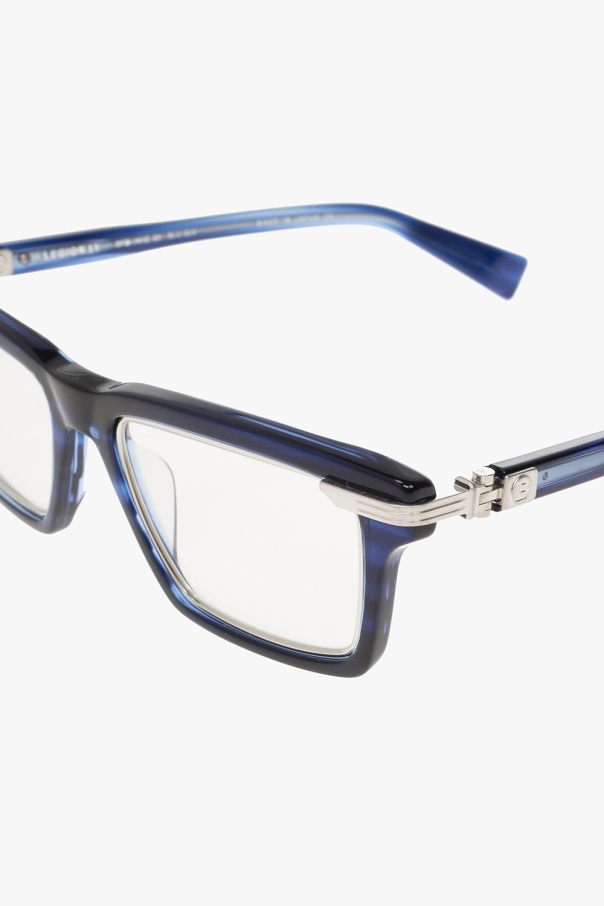 Navy ‘Legion IV’ optical glasses from Balmain. Made of acetate, this pair has decorative silver-tone hinges with a logo, temples with logo-engraved tips and clear lenses. Comes with a case.