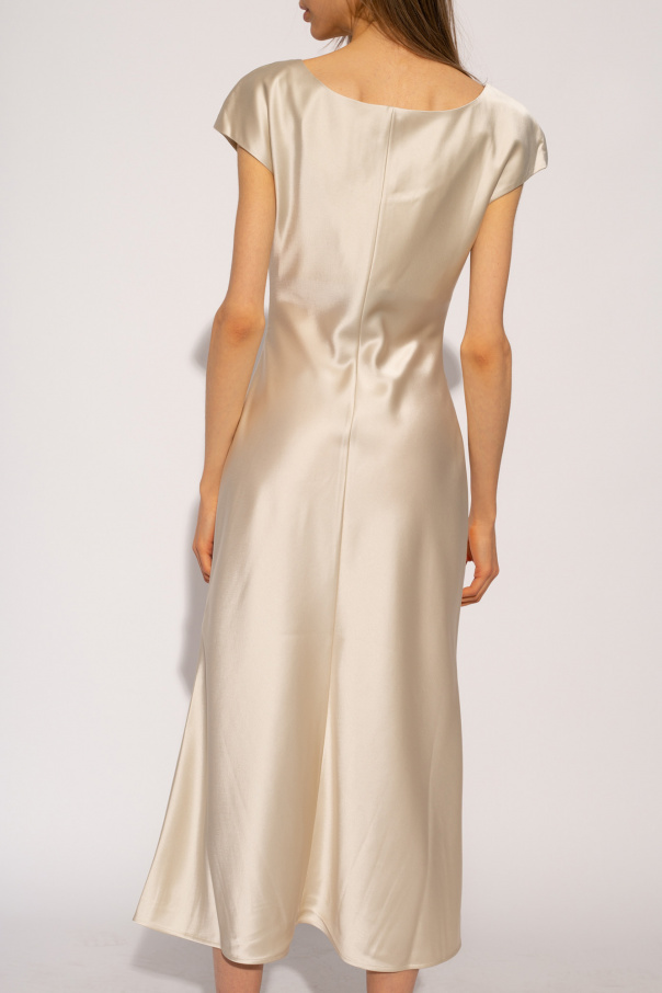 Cream and beige sleeveless dress from Toteme. This flared design is enriched by stitching details.