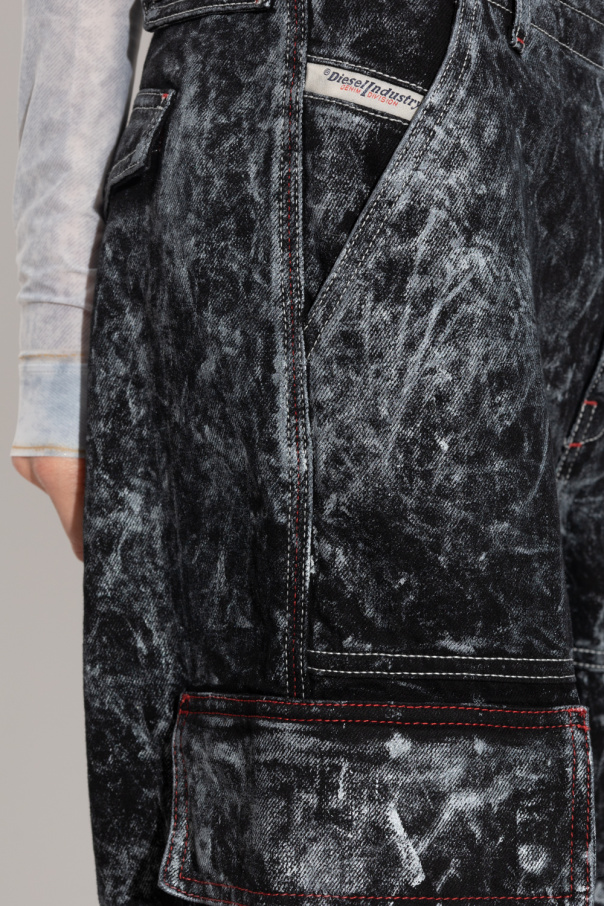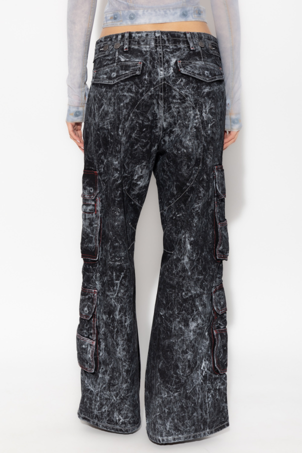 Black and silver-tone ‘D-SIRE-CARGO L.32’ jeans from Diesel. Made of cotton, this wide leg pair features button fastenings, paint splatter effect and multiple pockets.