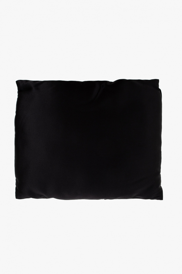 Black sleeping kit from Dolce & Gabbana. Made of silk, it includes shorts with a logo-embroidered elastic waistband and side slits, a sleep mask with a branded elastic tape and a small cushion with polyester padding.