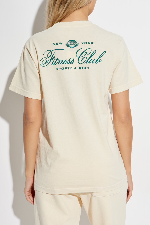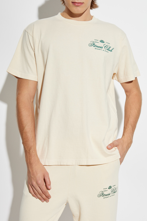 Introducing the Wall Street Collection T-Shirt by the illustrious fashion brand, Sporty & Rich. This exquisite piece epitomizes the blend of comfort and refined elegance, crafted from the finest cream-colored, soft cotton. Designed with a classic, straight cut and short sleeves, this unisex T-shirt complements both men and women, offering a versatile addition to any wardrobe. The front left chest features a subtle yet impactful green inscription, "New York Fitness Club Sporty & Rich," accompanied by a small logo. The back showcases a more prominent rendition of the same inscription and logo, ensuring a distinguished appearance from all angles. Highlighted in the collection’s imagery, the T-shirt is paired with matching cream-hued pants, adorned with the same green inscription on the left leg, underscoring its cohesive and stylish design. Sporty & Rich, founded by the visionary Emily Oberg, is renowned for its timeless sportswear imbued with understated luxury and vintage allure. Each piece, including this T-shirt, reflects a commitment to simplicity, everyday beauty, and sustainability, making it a staple for both athletic and urban chic looks. Why Choose This Product? Unisex Design: Perfect for any gender, offering versatility and inclusivity. Premium Material: Made from 100% soft, cream-colored cotton for unmatched comfort. Stylish Embellishments: Featuring exclusive inscriptions and logos that signify luxury. Timeless Appeal: A design that transcends fleeting trends, ensuring a lasting elegant look. Inspired by Heritage: Created by a brand that celebrates vintage sports fashion with a modern twist.