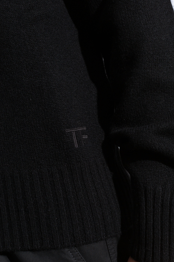 Introducing the Cashmere Sweater with Embroidered Logo from the exclusive collection by the legendary designer, Tom Ford. This exquisite black sweater epitomizes timeless elegance and unparalleled craftsmanship. Crafted from the finest cashmere, this sweater exudes luxury and offers an irresistibly soft touch. Its classic, straight-cut design features long sleeves and is finished with a round neckline. The hem, cuffs, and neckline are meticulously adorned with ribbed trims, ensuring a perfect fit and refined look. In keeping with Tom Ford's minimalist aesthetic, the sweater boasts a monochromatic black hue, free of any distracting patterns. A subtle "TF" logo, delicately embroidered at the hem, adds a touch of understated sophistication, symbolizing the designer's renowned attention to detail. Why You Should Buy This Product: High-quality cashmere for superior softness and comfort. Classic, versatile design suitable for any occasion. Elegant ribbed trims for a polished finish. Subtle branding with the iconic "TF" logo. Designed by Tom Ford, a celebrated name in the fashion industry.