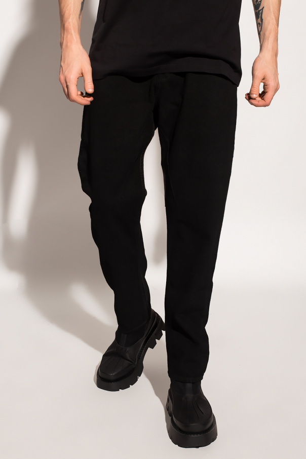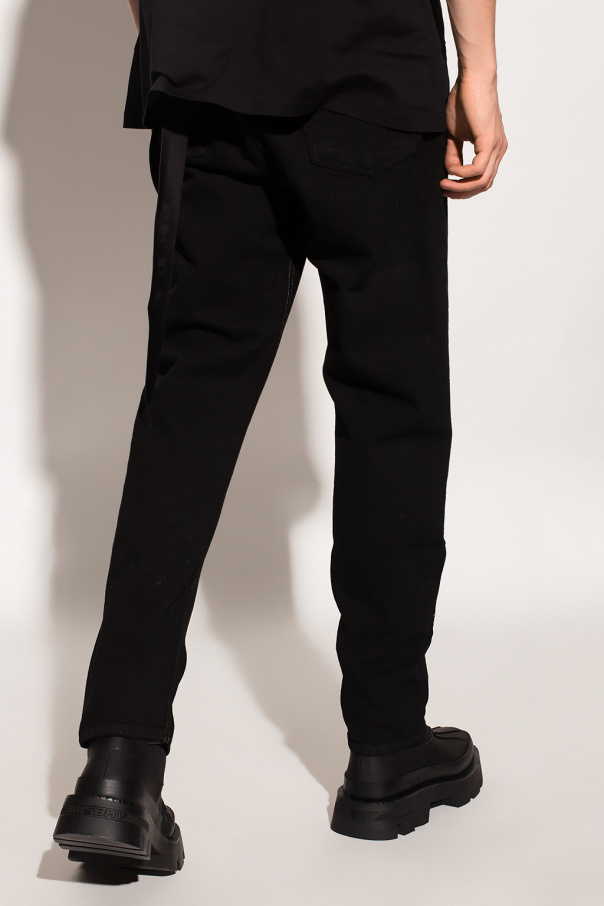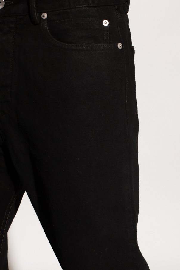 Black jeans from Rick Owens DRKSHDW. Equipped with six pockets (four on the front and two on the back), this pair features button fastenings and a black fabric insert with the designer's logo on the back.
