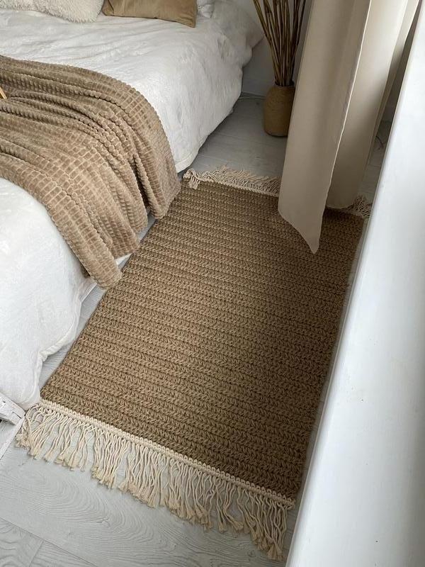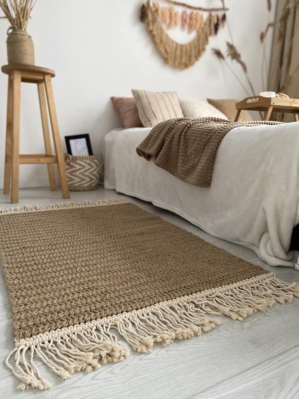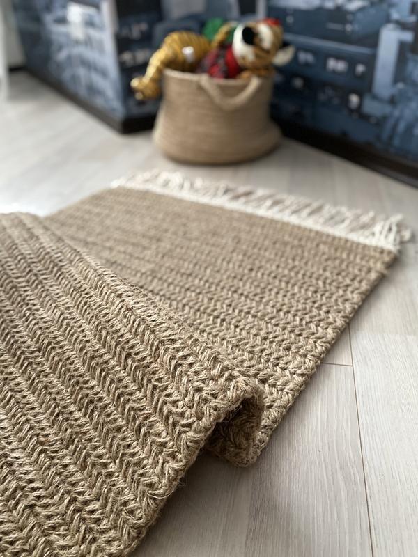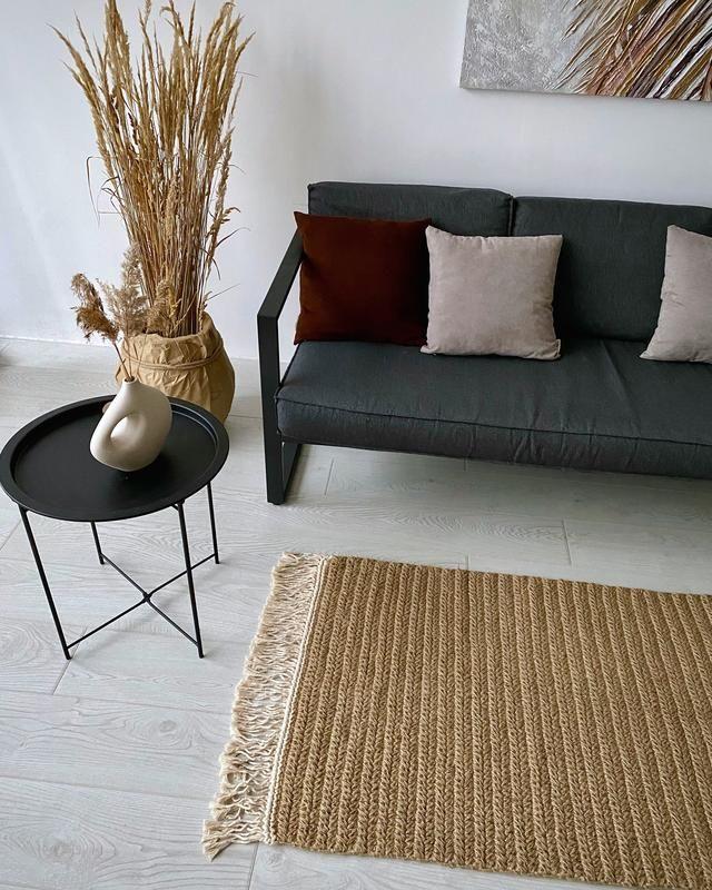 Рукотворний килим із джута чудово вписується у різні дизайнерські стилі (еко, скандинавський бохо та ін.)