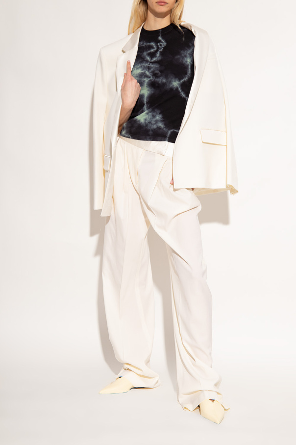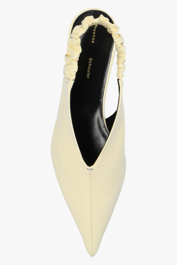 Cream ‘Spike Slingback’ flats from Proenza Schouler. Made of patent leather, this pair features a decorative strap with gathers, pointed toe and brown leather sole.