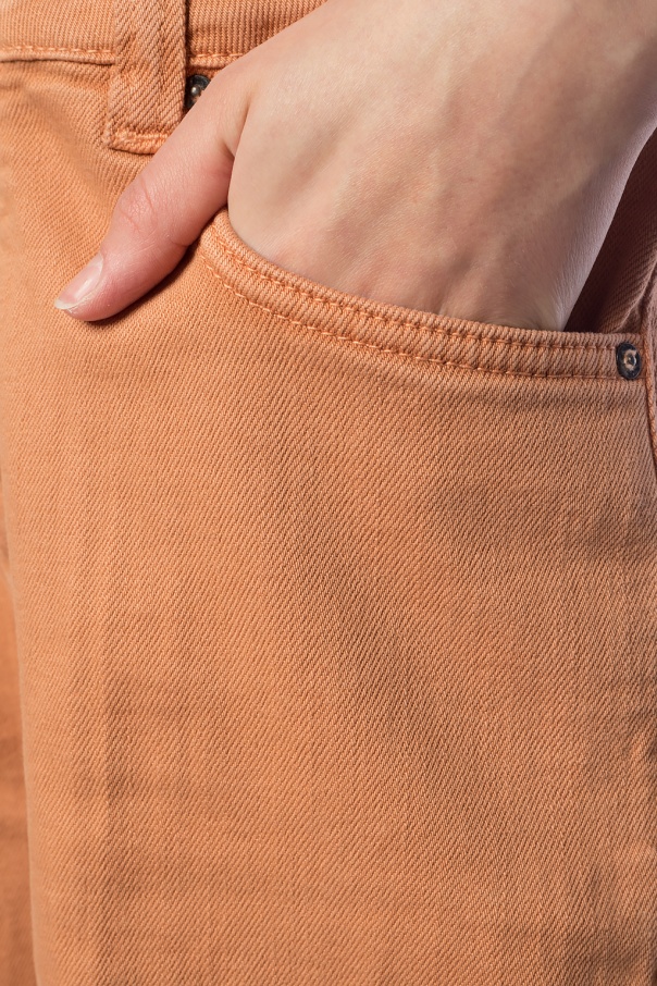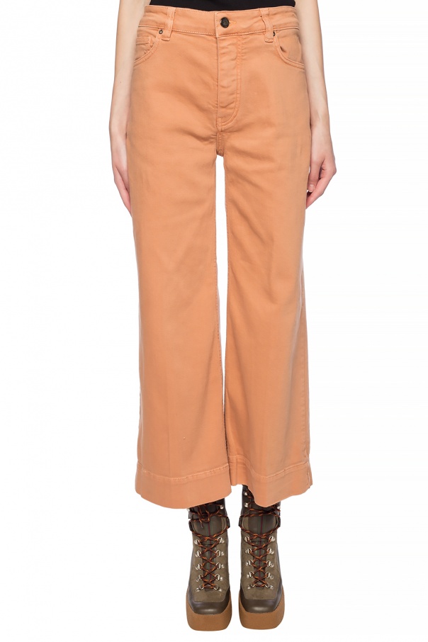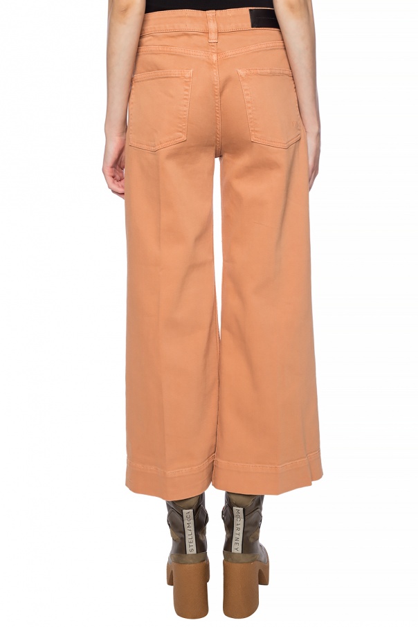 Orange and pink jeans from Victoria Victoria Beckham. Fastened via buttons. Embellished with a black patch embossed with logo. They feature 4 slip pockets and cropped flared legs.