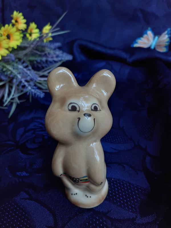 Вашему вниманию винтажный малыш, - редкая малотиражная статуэтка «Олимпийский мишка», изготовленная в эпоху СССР лимитированным тиражом на Дружковском фарфоровом заводе (город Дружковка Донецкой области).