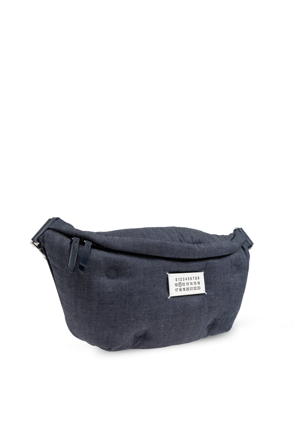Presenting the exclusive belt bag from the illustrious Maison Margiela collection. This refined accessory embodies a harmonious blend of luxury and casual elegance. Crafted from resilient textile reminiscent of denim, this belt bag features a classic rectangular shape with rounded edges, giving it a plush and soft appearance. The delicate stitching on its surface forms subtle indentations, adding a touch of sophistication. The front of the bag proudly displays a distinctive white patch with numeration from 0 to 23, with the number 11 circled, signifying its unique product line. The bag is secured with a dual-zip closure, ensuring both style and practicality. Designed in a versatile navy hue, this unisex belt bag is perfect for both men and women. The adjustable strap allows for flexible wearing options—either around the waist or slung over the shoulder. Why Buy This Product? Signature Design: Features the iconic Maison Margiela numeration patch. High-Quality Materials: Constructed from a durable, denim-like textile and leather. Versatility: Adjustable strap for multiple wearing styles. Functionality: Includes an internal compartment and zippered pocket. This description showcases the product's unique characteristics and sophisticated appeal, making it an ideal addition to any luxury wardrobe.