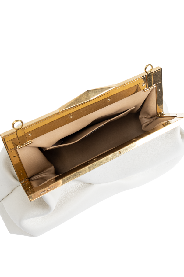 Introducing the ‘Diamond’ Leather Clutch by Jimmy Choo, a masterpiece of craftsmanship that redefines the essence of luxury accessories. Crafted with the finest calfskin leather, both inside and out, this exquisite clutch boasts a creamy hue that exudes sophistication and elegance. The ‘Diamond’ clutch features a soft, wavy silhouette with gentle, yet distinct folds that lend an air of delicacy to its design. Its opulence is further accentuated by shimmering gold metal elements, including a polished gold frame that not only secures the clutch with a snap closure but also proudly displays the Jimmy Choo name, affirming its authenticity and exclusive allure. An adjustable, detachable strap offers versatile carrying options, allowing the clutch to be worn as a crossbody for a hands-free experience or held as a traditional clutch. The strap’s hardware harmonizes with the golden details of the clutch, creating a cohesive and luxurious appearance. The interior, lined in a beige-toned leather, provides a subtle contrast to the exterior, and includes a compartment with a card slot, ensuring both style and functionality. Displayed in the hand of a model, the ‘Diamond’ clutch presents a sense of scale and proportion, highlighting its suitability for both day-to-day elegance and evening glamour. Why choose the ‘Diamond’ Leather Clutch? Made with premium calfskin leather for unmatched quality and durability. Features a versatile, detachable strap for multiple wearing options. Enhanced with luxurious gold metal details for a touch of opulence. Designed by the renowned designer Jimmy Choo, ensuring exclusivity and authenticity. Equipped with an internal compartment and card slot for practicality without compromising on style.
