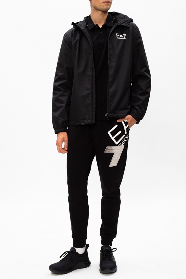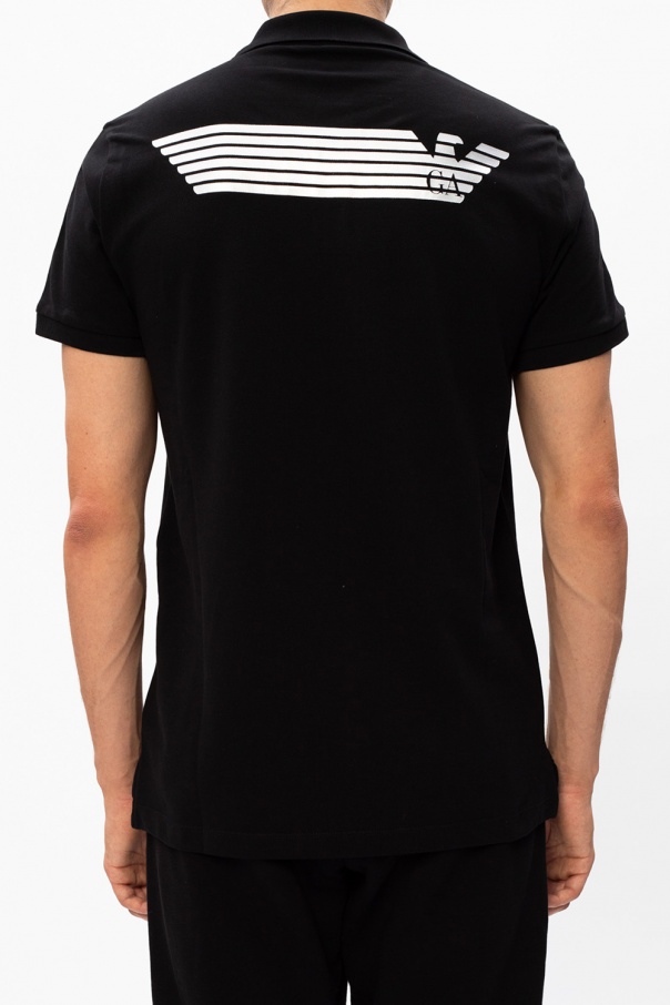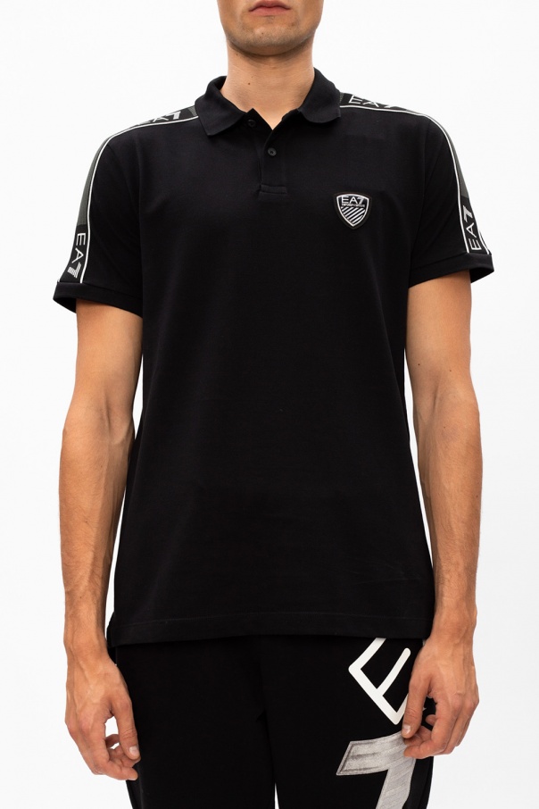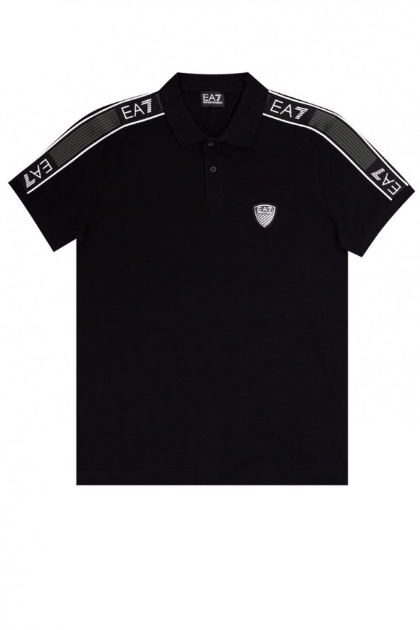 Black polo shirt from EA7 Emporio Armani. Crafted from cotton, this item features button fastenings, logo details and side vents.