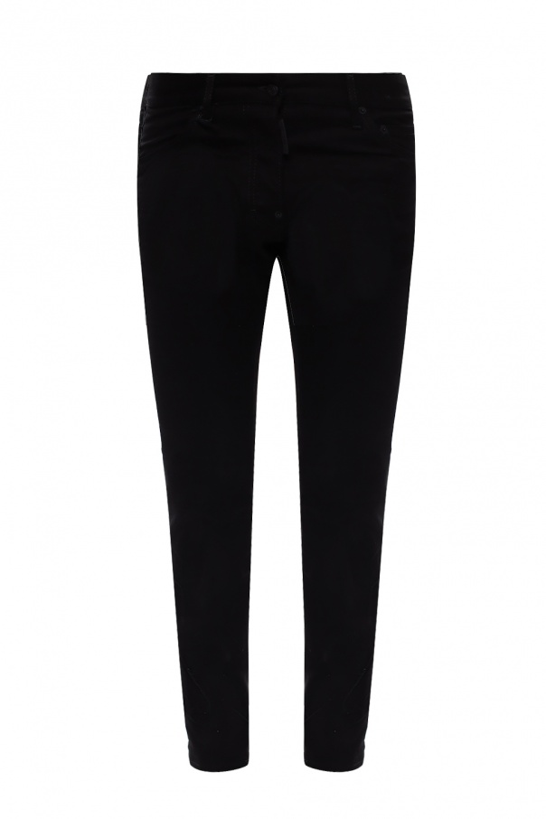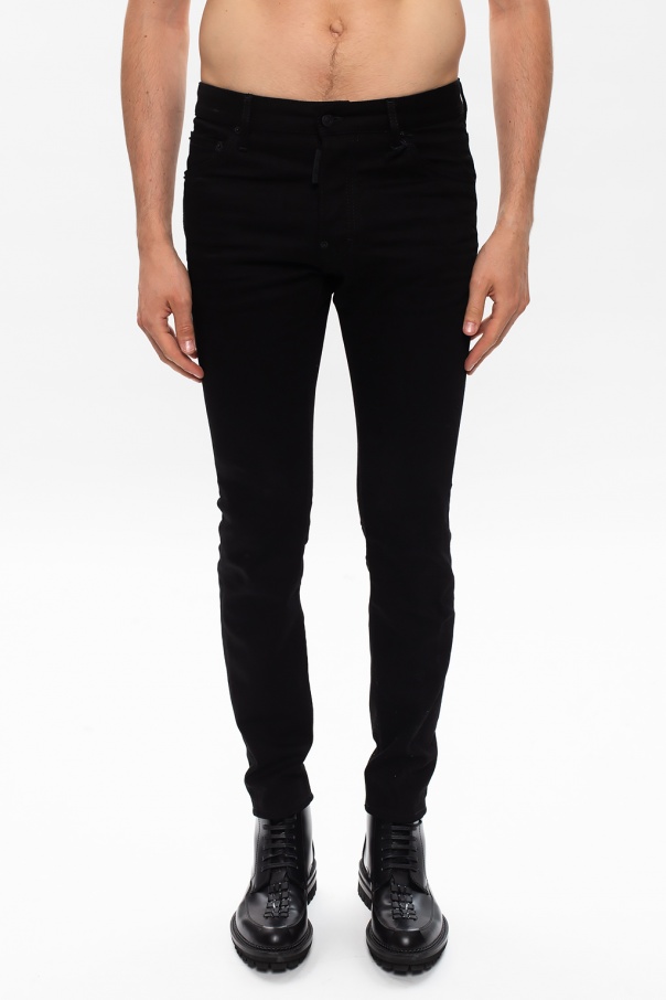 Black ‘Cool Guy’ jeans from Dsquared2. Fastened with buttons. Decorated with a logo patch. 3 slip pockets on the front, 2 at the back.