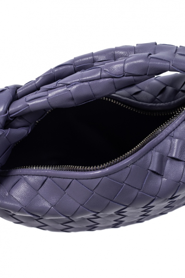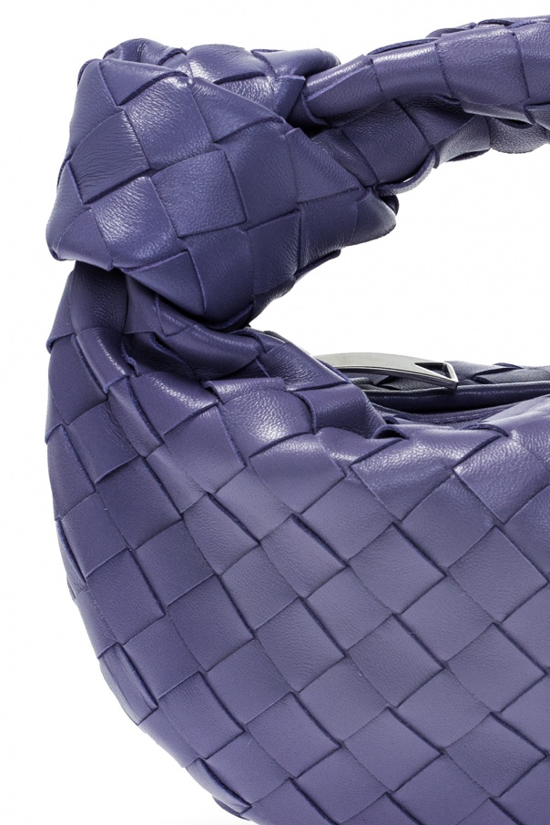 Purple ‘Jodie Mini’ handbag from Bottega Veneta. Crafted from lamb leather and calf leather with the brand's iconic ‘Intrecciato’ weave, this design features a zip fastening, a half-round handle and one internal compartment.