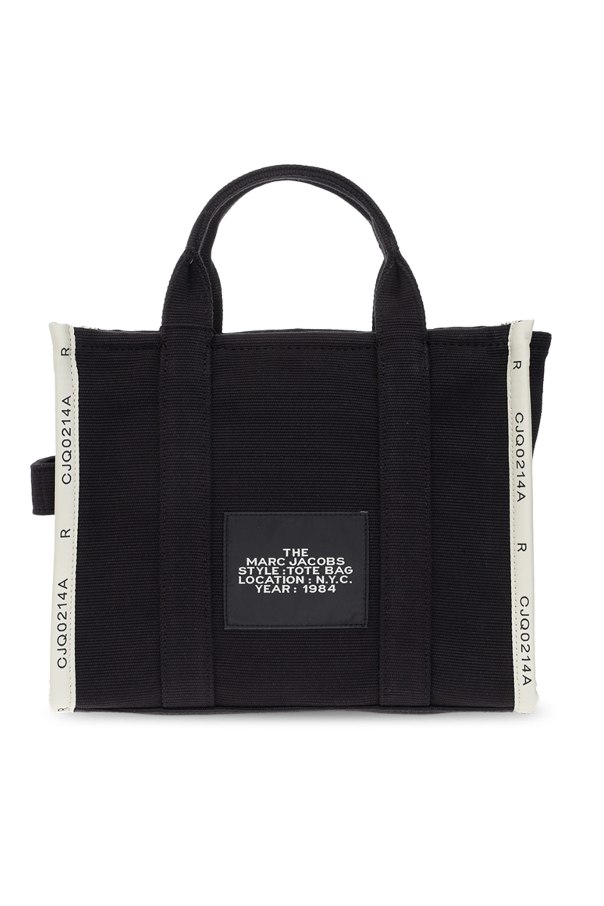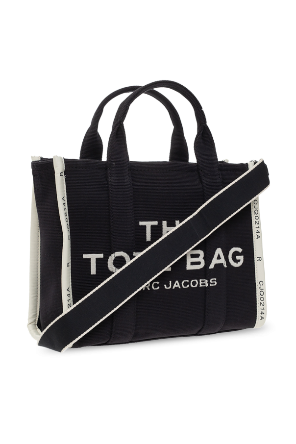 Black and white ‘The Tote Medium' bag c Jacobs. Crafted from cotton, this model features a zip fastening, logo pattern, two half-round handles, detachable shoulder strap, silver-tone metal hardware and one internal compartment with two slip pockets and one zip pocket.