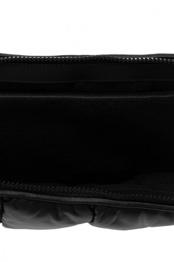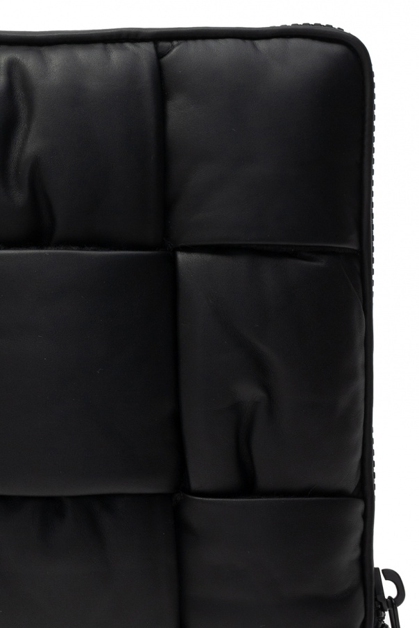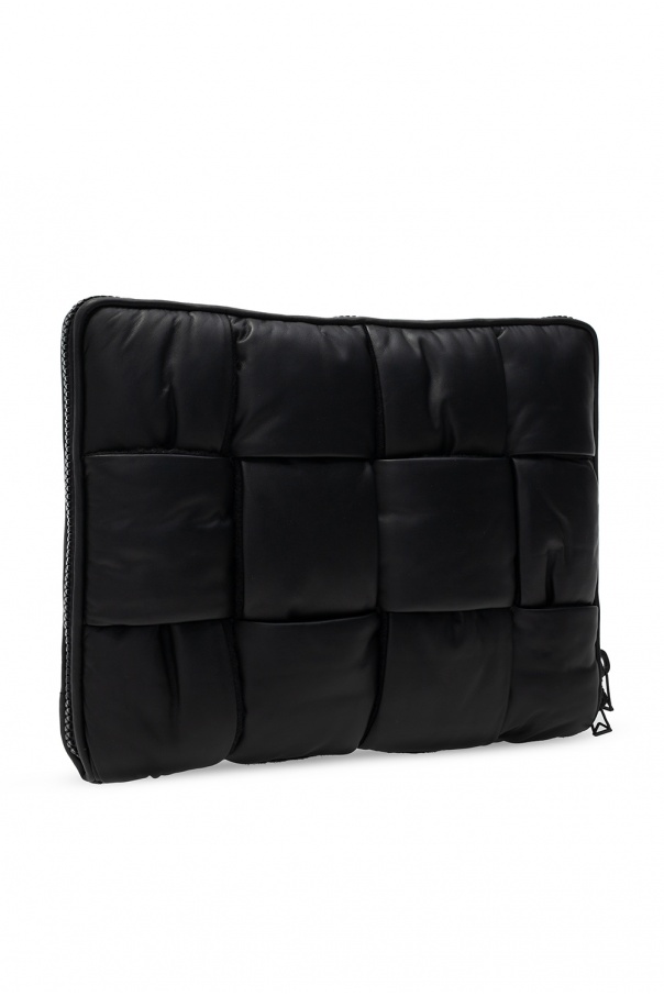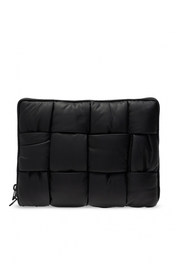 Black document case from Bottega Veneta. Crafted from calf leather with the label's iconic 'Intrecciato' weave, this design fastens via two-way zip closure and features wool clad interior with one zip pocket.