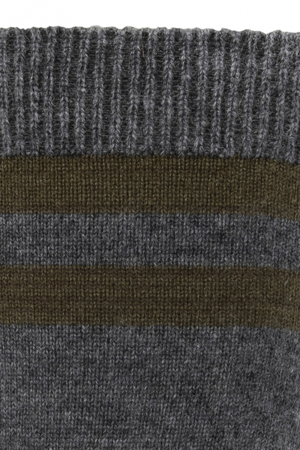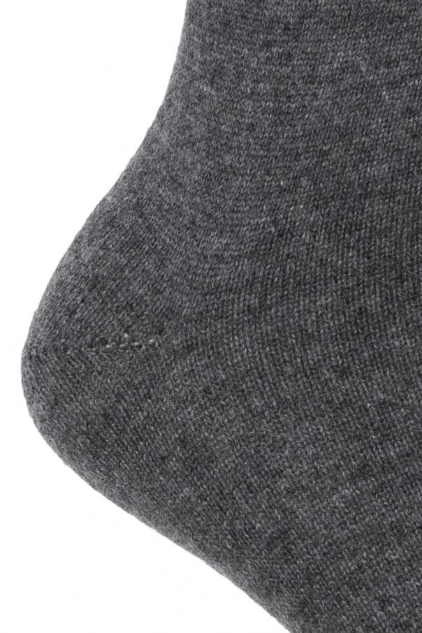 Grey socks from Birkenstock, the ‘1774’ collection. Crafted from cashmere, this pair is enriched by khaki stripes.