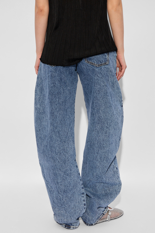 Introducing the Alaïa High-Waisted Boyfriend Jeans, a testament to timeless style and comfort. Crafted from a premium blend of 99% cotton and 1% polyurethane, these jeans offer both durability and a slight stretch for the ultimate wearing experience. The high-rise silhouette, coupled with a relaxed boyfriend fit, ensures ample space in the hips and thighs, prioritizing comfort without sacrificing elegance. The jeans feature a stone washed denim pattern, presenting various shades of blue that evoke a subtly distressed and worn aesthetic, making each pair uniquely sophisticated. Contrasting orange stitching accentuates classic denim details, enhancing the overall look with a touch of vibrancy. Functionality meets style with five practical pockets: two at the back, two at the front, and a discreet coin pocket. Secured with a zipper and button closure, these jeans meld traditional elements with contemporary design. The absence of overt branding allows the quality and craftsmanship to shine, a hallmark of the Alaïa brand's understated elegance. Why Purchase These Jeans? Superior Comfort: High-waisted, boyfriend cut for a relaxed and comfortable fit. Exceptional Quality: Premium cotton blend ensures durability while offering a soft, breathable feel. Versatile Design: Stone washed denim and neutral color palette allow for effortless pairing with various wardrobe pieces. Attention to Detail: Contrasting stitching and subtle design elements underscore the jeans' unique character and sophistication.