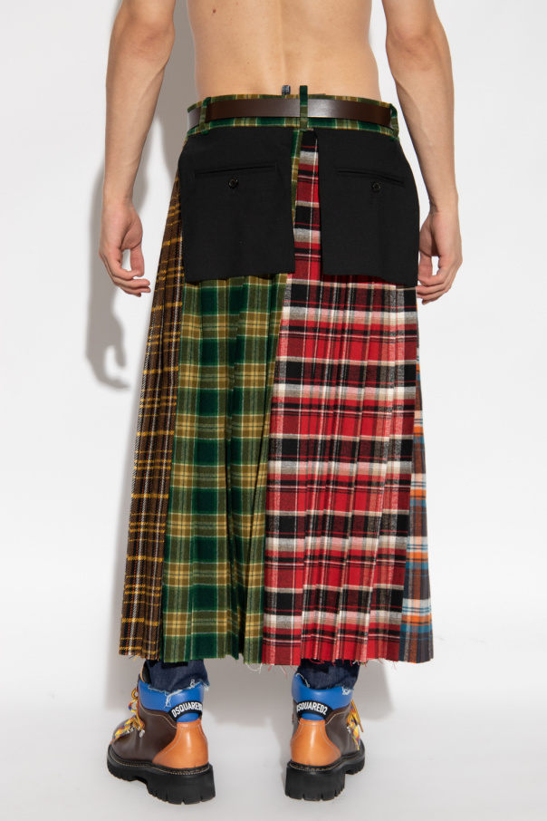 Multicolored pleated skirt from Dsquared2. Crafted from wool, this design features a check pattern and two buttoned back pockets.