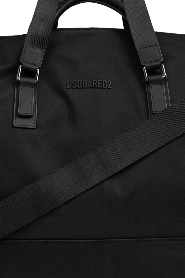 Introducing the Dsquared2 Black Handbag, an epitome of sophistication and practicality from the esteemed collection of renowned designers Dan and Dean Caten. This rectangular-shaped bag, with its rounded edges, exudes a contemporary charm that seamlessly blends into both travel and sports aesthetics. Crafted from durable poliamid, this handbag promises longevity and resilience. The black exterior is not only elegant but also versatile, poised to complement any attire. The bag features two robust hand straps and an adjustable, detachable shoulder strap with metal buckles, ensuring both comfort and style. A subtle, embossed DSQUARED2 logo adorns the front, adding a touch of understated luxury. The spacious interior, accessible through a top dual-zip closure, includes a main compartment with additional pockets: a zippered pocket and two slip pockets for optimal organization. The exterior snap-fastened layer further enhances its functionality, making it a perfect companion for the discerning traveler. Why Choose This Product? Exclusive Design: A blend of American glamour and Italian chic by Dsquared2. Durable Material: Made from high-quality poliamid, ensuring durability. Spacious and Functional: Ample storage with multiple pockets for organized packing. Versatile Wear: Features both hand straps and a detachable shoulder strap for varied use. Elegant Aesthetic: Sleek black color with a subtle designer logo for a polished look.