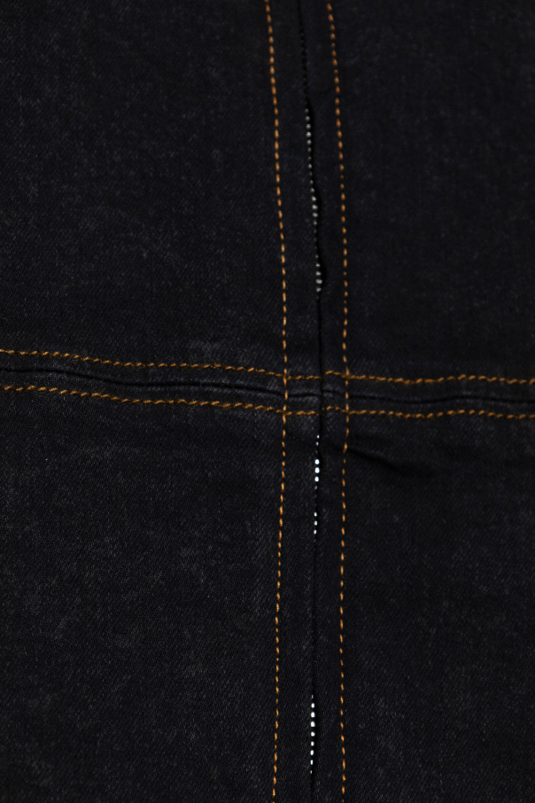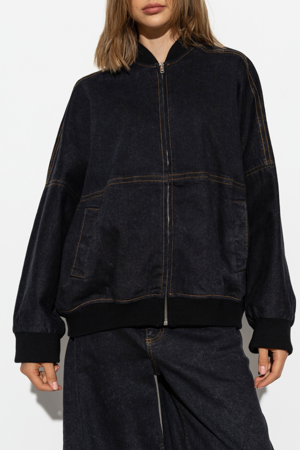 Discover the epitome of timeless elegance with the Denim Jacket from the illustrious Italian brand, Marni. Renowned for its eclectic designs and meticulous attention to detail, Marni presents this exquisite dark denim jacket, a versatile addition to any discerning wardrobe. Crafted from premium-quality denim, this jacket features a loose, oversized silhouette with long sleeves and a straight cut. The deep navy hue is accentuated by striking orange stitching, adding a touch of sophistication to its minimalist design. A silver zipper graces the front, while discreetly sewn front pockets offer practicality without compromising on style. Black ribbed cuffs and hem complete the look, ensuring a perfect blend of casual elegance. Why Choose This Product? Exquisite Material: Made from high-quality denim with a subtle elastane blend for a comfortable fit. Timeless Design: The classic, understated style makes it a versatile piece for any occasion. Distinctive Detailing: Features contrasting orange stitching and sleek black ribbed accents. Functional Elegance: Equipped with a silver zipper and discreet front pockets. Exclusive Brand: Designed by Marni, known for its unique, culturally influenced aesthetic and exquisite craftsmanship.
