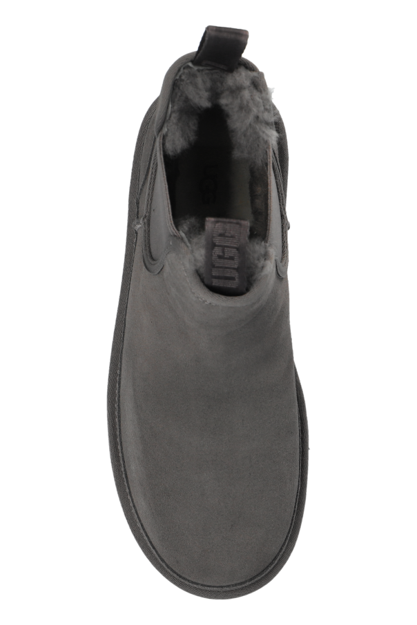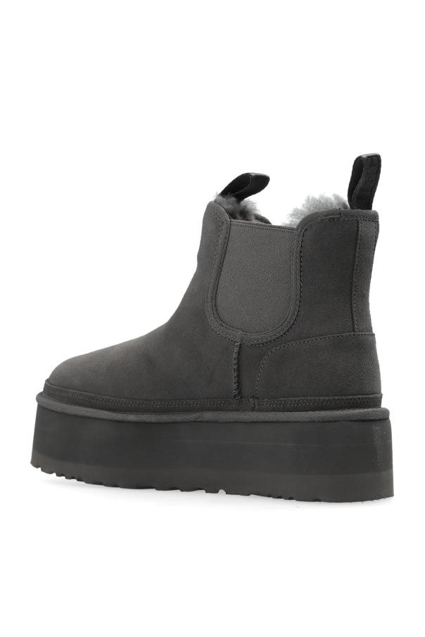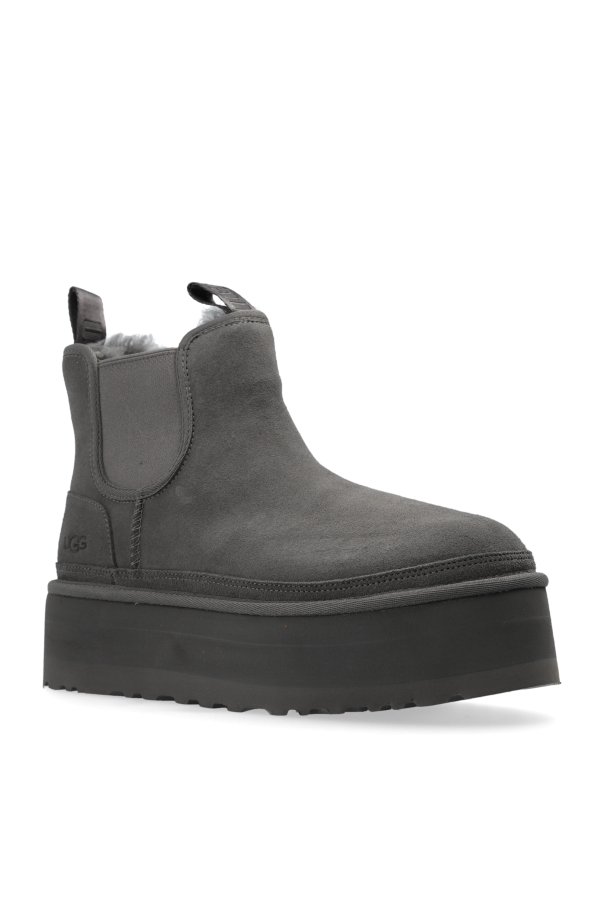 Introducing the Neumel Platform Chelsea women's snow boots from the exclusive collection by UGG. These sophisticated boots epitomize style and functionality, offering the perfect blend of elegance and practicality. The Chelsea design is characterized by its slip-on style with elastic side panels for effortless wear. Featuring a platform sole, these boots add height and a substantial look, making them a standout addition to any winter wardrobe. Crafted in a versatile grey suede, they boast a slightly textured surface that exudes luxury. The interior is lined with a plush, shearling-like material, ensuring warmth and comfort during the colder months. Pull tabs on the back and front facilitate easy wearing, while the embossed logo on the side signifies their premium status. The thick, sturdy rubber sole has a ridged pattern, providing excellent traction and durability, essential for navigating snowy or icy conditions. These boots are not only fashionable but also practical, making them suitable for both casual and semi-casual ensembles. Dlaczego warto kupić ten produkt? Elegant Chelsea design with slip-on convenience. Luxurious grey suede exterior. Plush, shearling-like interior for added warmth and comfort. Thick platform sole for height and durability. Embossed branding for a premium look. Excellent traction with ridged rubber sole.