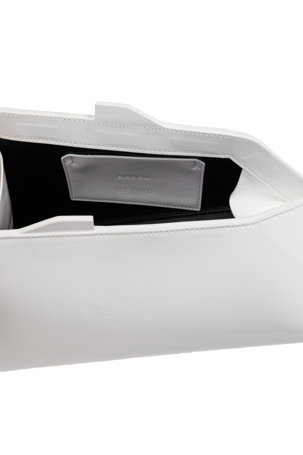 Introducing the "8.30 PM" clutch by The Attico, a masterpiece that redefines evening elegance. This exquisite accessory stands out with its pristine white hue, embodying both sophistication and versatility. The clutch's unique, geometric silhouette, reminiscent of folded origami, showcases an avant-garde design with sharp edges and intricate lines, setting a new standard for modern refinement. Crafted from a blend of 70% Polyurethane and 30% Polyester, the "8.30 PM" clutch exhibits a high-gloss finish that imitates leather with exceptional fidelity, lending it a luxurious character. The meticulous stitching visible on its exterior not only adds texture but also speaks volumes of its meticulous craftsmanship. Inside, a designer label confirms its exclusive lineage from The Attico's coveted collection, assuring its authenticity and premium heritage. Functionality meets sophistication in this clutch, which features a secure snap closure, a spacious main compartment, and an additional slip pocket, perfectly accommodating essentials like a phone, keys, and cosmetics. Designed with elegant evening outings and special occasions in mind, it promises to be not just an accessory but a statement. Why Purchase the "8.30 PM" Clutch? Exclusive Design: Its unique, geometric shape and polished finish set it apart from conventional evening bags. Luxurious Material: High-quality, glossy faux leather for a luxurious look and feel. Attention to Detail: Subtle stitching and designer label signify superior craftsmanship and exclusivity. Practical Elegance: Equipped with a snap closure, main compartment, and slip pocket for essential items.