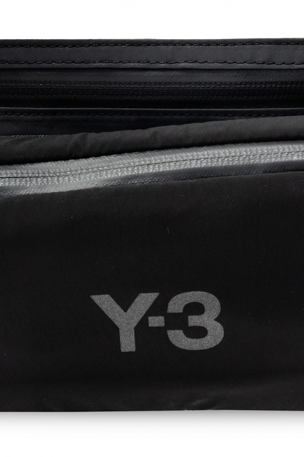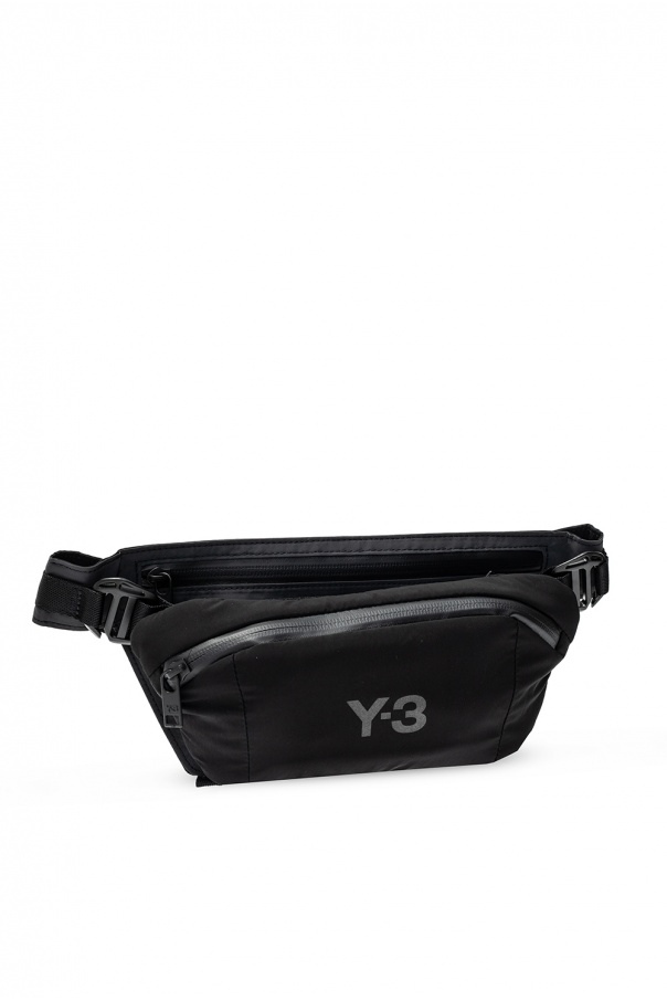 Black belt bag from Y-3 Yohji Yamamoto. Fastened with a zip, this item features a grey logo print, back zip pocket, main internal compartment, adjustable belt and a detachable zipped pouch.