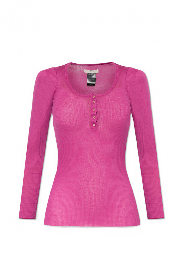 Pink ‘Lamylic’ transparent top from Isabel Marant Étoile. Made of ribbed cotton, this long sleeve design features button fastenings.