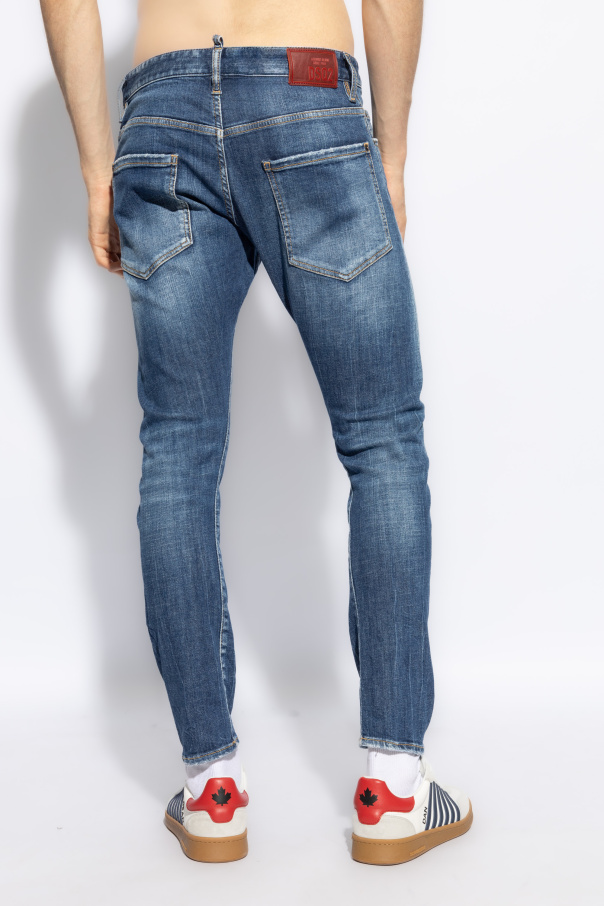 Immerse yourself in the epitome of sophistication with the Jeansy 'Sexy Twist' by the illustrious Dsquared2. Crafted from a blend of the finest materials, these jeans are a testament to unparalleled comfort and resilience, featuring 93% Cotton, 4% Polyester, and 3% Elastane. The classic blue hue is masterfully accented with lighter distress marks on the thighs, imbuing a chic, worn-in aesthetic. The 'Sexy Twist' jeans are meticulously designed with a tailored fit that gracefully tapers towards the ankles, ensuring a silhouette that is both flattering and versatile. The quintessential five-pocket arrangement, including a petite coin pocket, is complemented by the striking contrast of orange stitching that traverses the entirety of the jeans. A distinctive red accent at the button and the iconic red brand tag at the back waistband underscore the designer's attention to detail and brand identity. Upon closer examination, the excellence in craftsmanship is evident in every stitch, affirming the product's premium quality and the designer's commitment to excellence. Not overly tight, these jeans promise ease and mobility, allowing for an impeccable fit that does not compromise on style or comfort. Why Purchase This Product? Exquisite Craftsmanship: Precision in every detail, showcasing the high quality of materials and construction. Designer Appeal: The distinctive aesthetic elements, including the red button accent and brand tag, elevate these jeans beyond the ordinary. Unmatched Comfort: The thoughtful blend of fabrics ensures a fit that's both comfortable and flattering for all-day wear. Versatile Style: The 'Sexy Twist' jeans are a perfect amalgamation of classic style with a modern twist, making them suitable for various occasions.