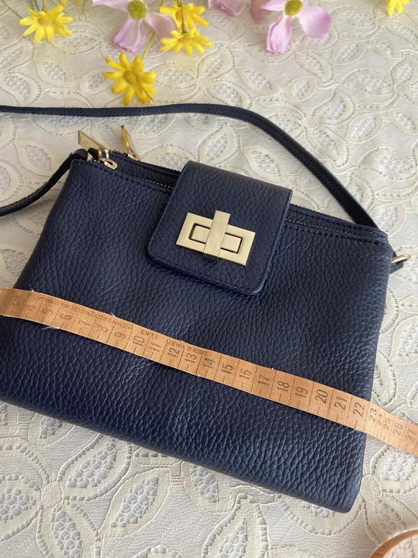 Красива , зручна, має багато відділень, шкіряна, дуже м‘яка , типу під шкіру рептилії, нова річ, без нарікань. Все на фото . Колір темно-синій .