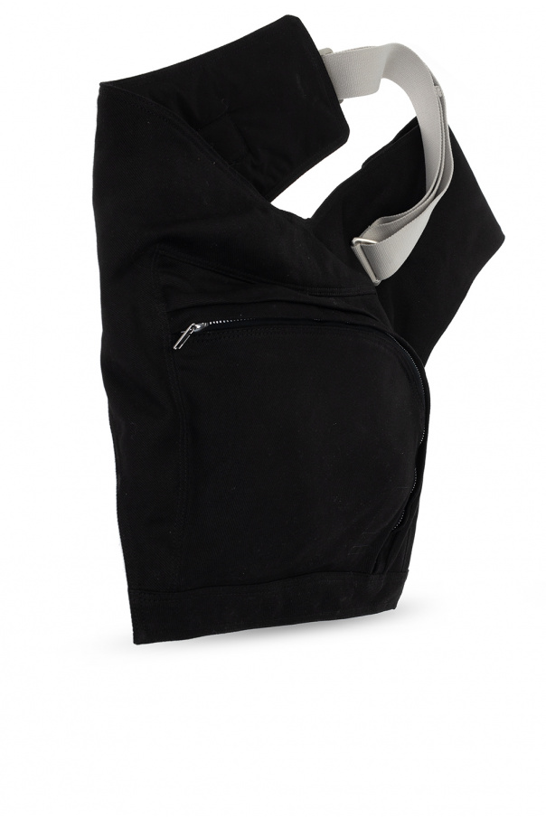 Black belt bag from Rick Owens DRKSHDW. Made of cotton, this design features a zipped pocket and a waist belt with a snap closure.
